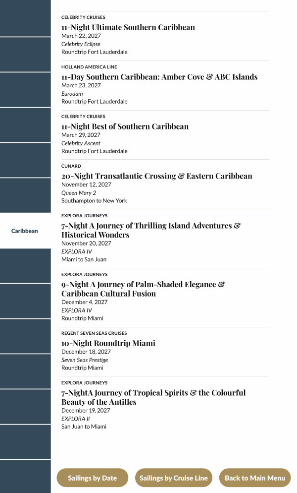Sailings by Cruise Line
