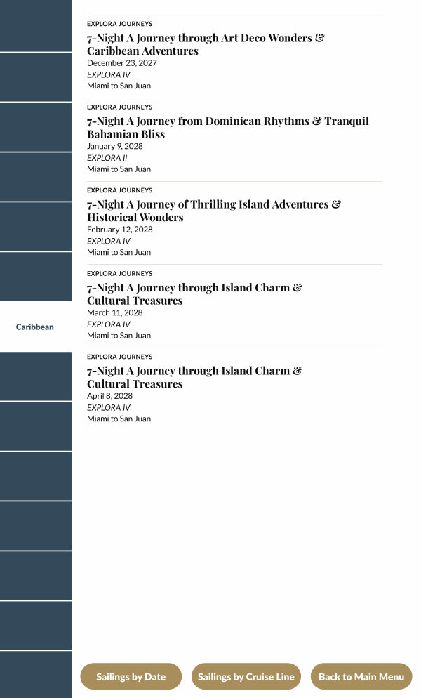 December 23, 2027 EXPLORA IV Miami to San Juan