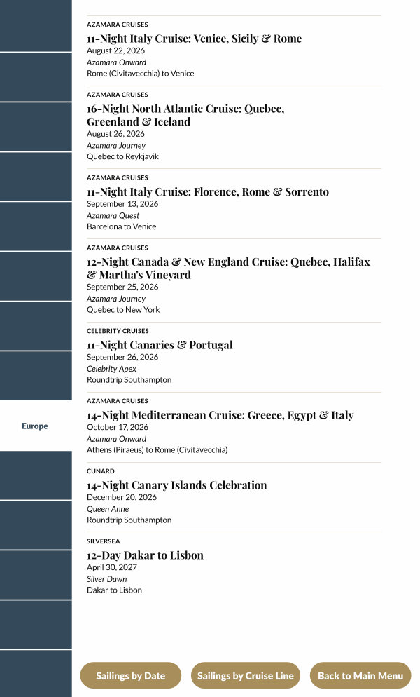 September 13, 2026 Azamara Quest Barcelona to Venice