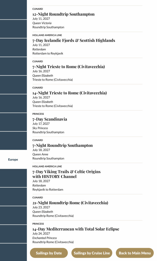 July 17, 2027 Sky Princess Roundtrip Southampton