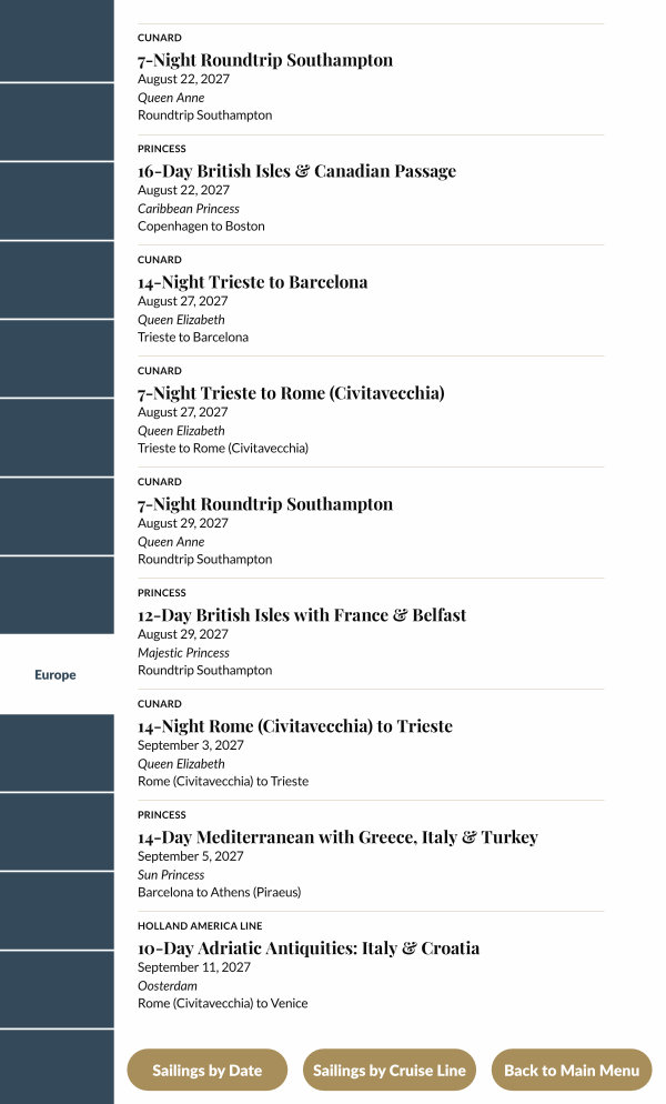 September 3, 2027 Queen Elizabeth Rome( Civitavecchia) to Trieste