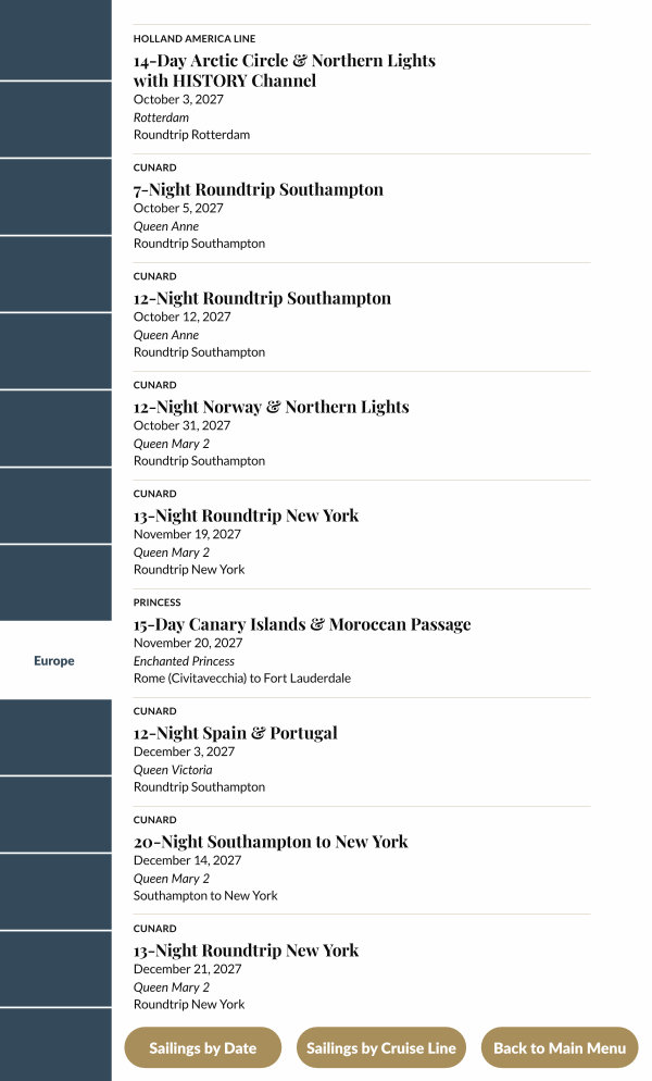 October 12, 2027 Queen Anne Roundtrip Southampton