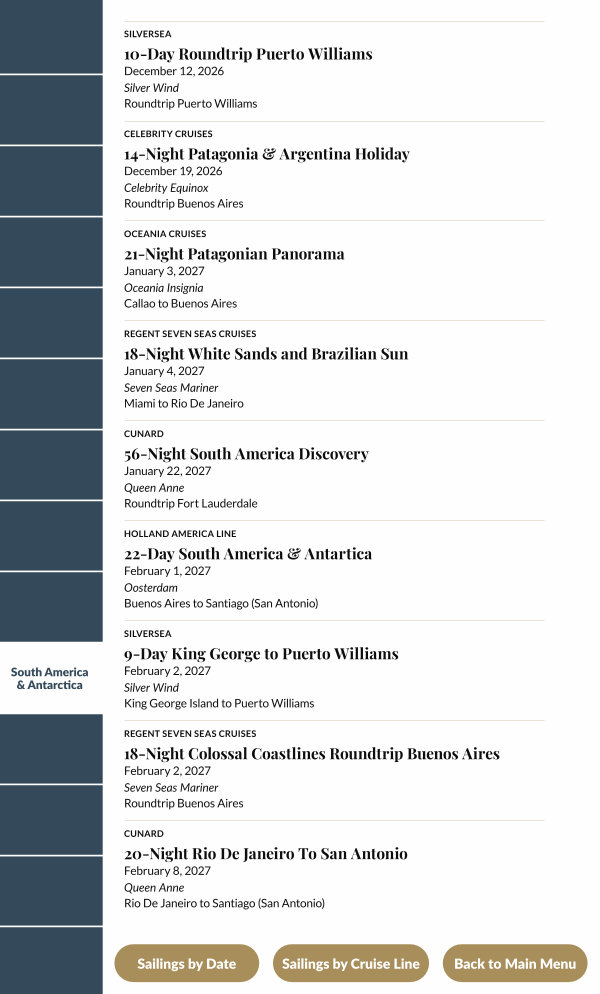 December 12, 2026 Silver Wind Roundtrip Puerto Williams