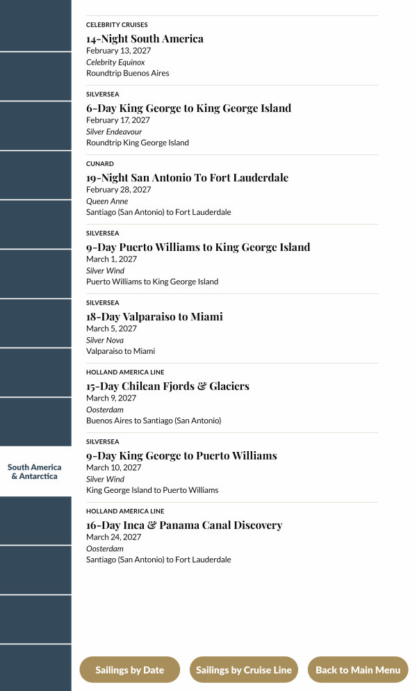 March 10, 2027 Silver Wind King George Island to Puerto Williams
