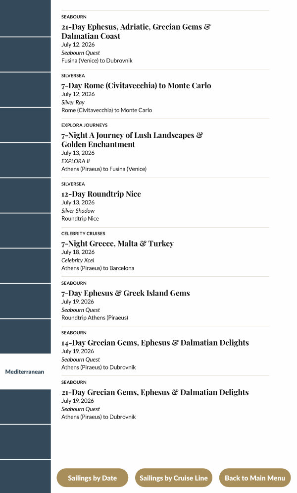 July 19, 2026 Seabourn Quest Roundtrip Athens( Piraeus)
