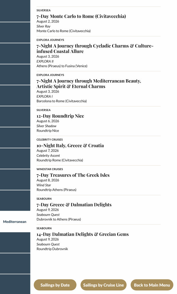 Sailings by Cruise Line