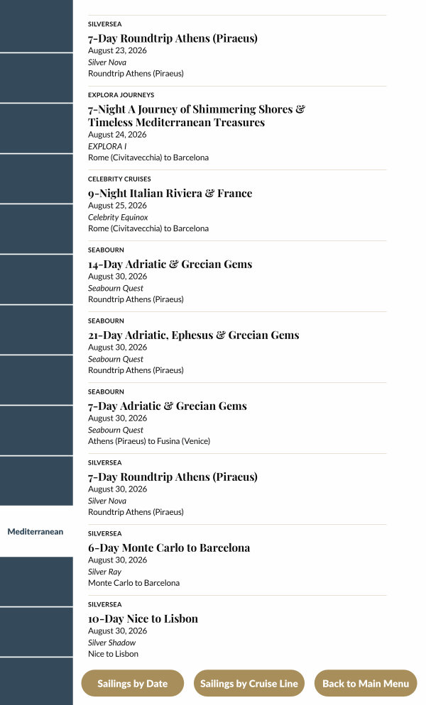 Sailings by Cruise Line