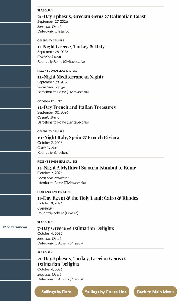 Sailings by Cruise Line |