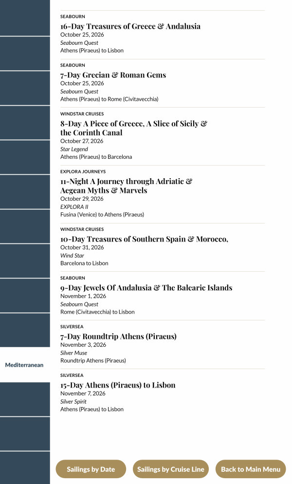 October 27, 2026 Star Legend Athens( Piraeus) to Barcelona