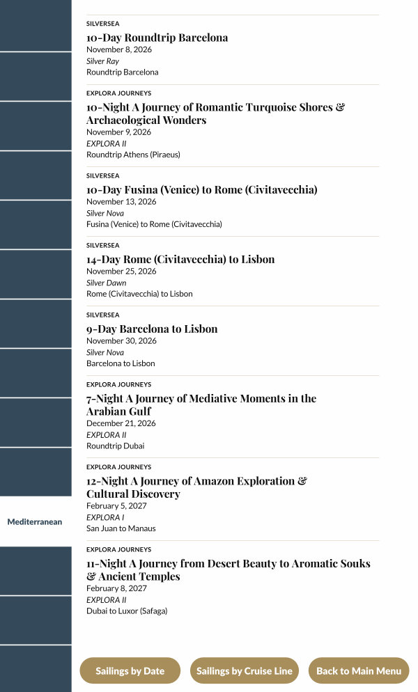 Sailings by Cruise Line |