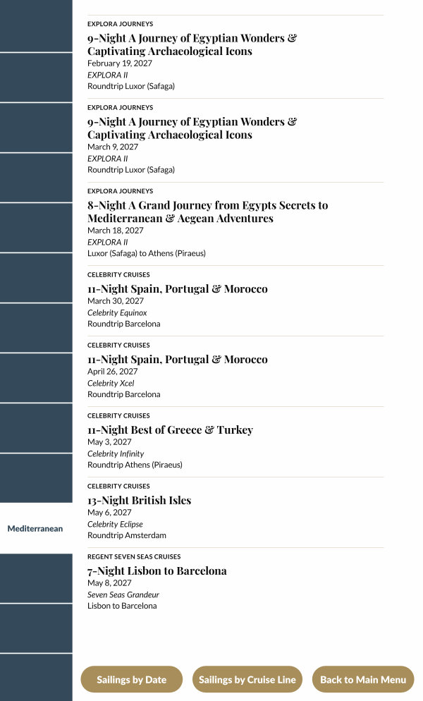 Sailings by Cruise Line