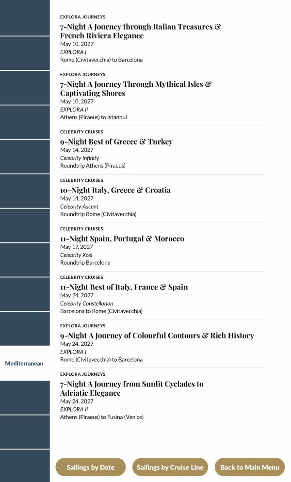 Sailings by Cruise Line