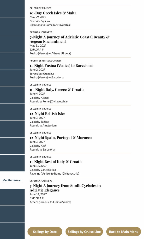 Sailings by Cruise Line
