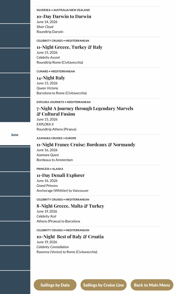 Sailings by Cruise Line