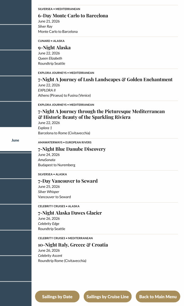 Sailings by Cruise Line