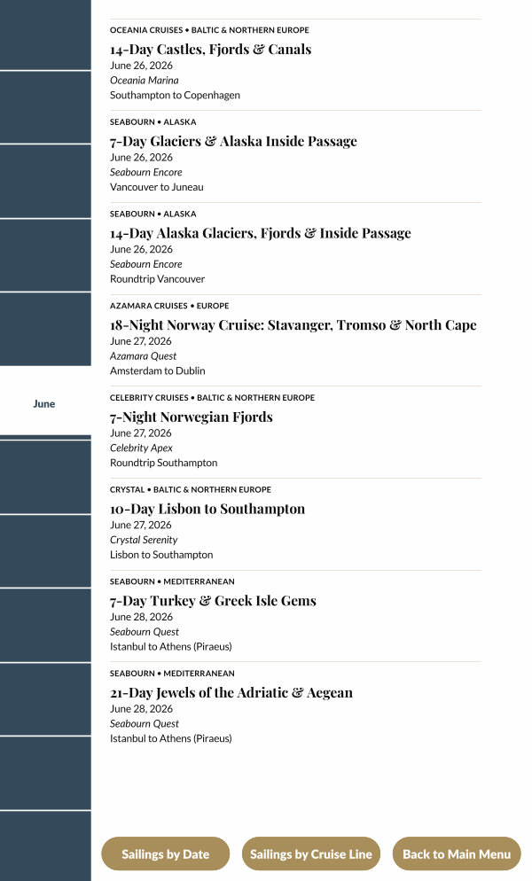 Sailings by Cruise Line