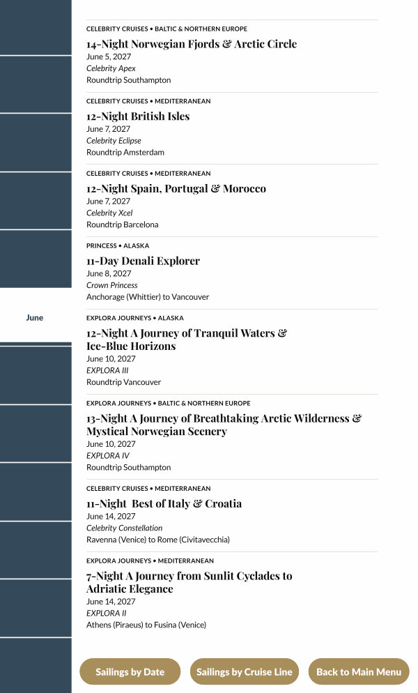 Sailings by Cruise Line