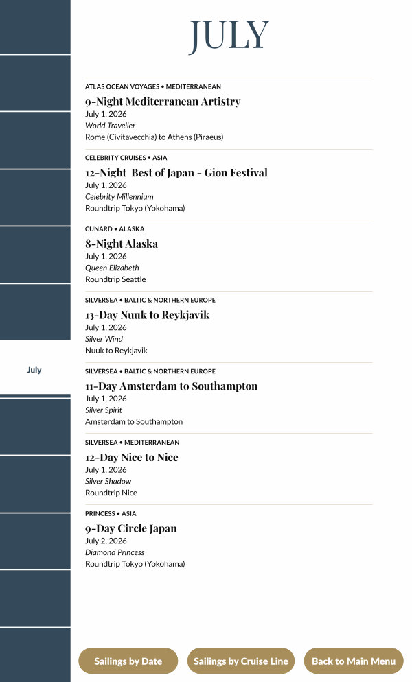 Sailings by Cruise Line