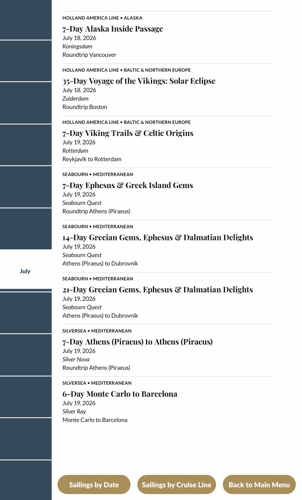 Sailings by Cruise Line