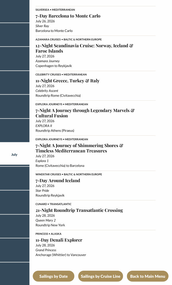 Sailings by Cruise Line