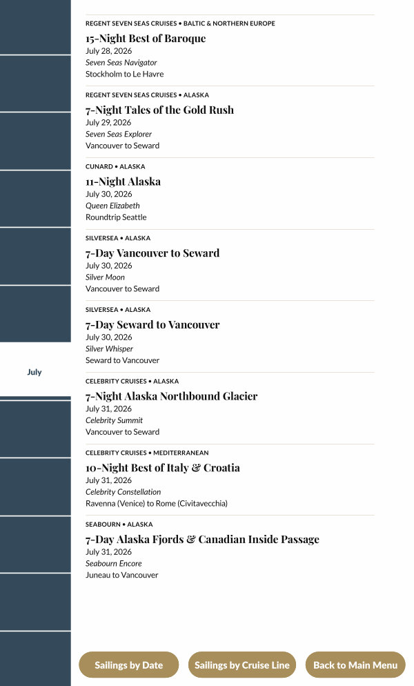 Sailings by Cruise Line