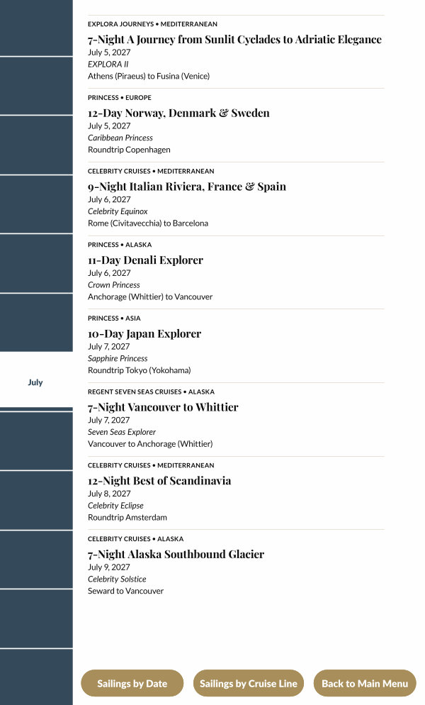 July 9, 2027 Celebrity Solstice Seward to Vancouver