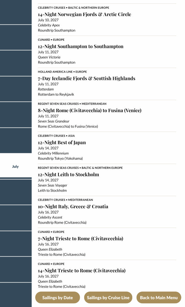 Sailings by Cruise Line