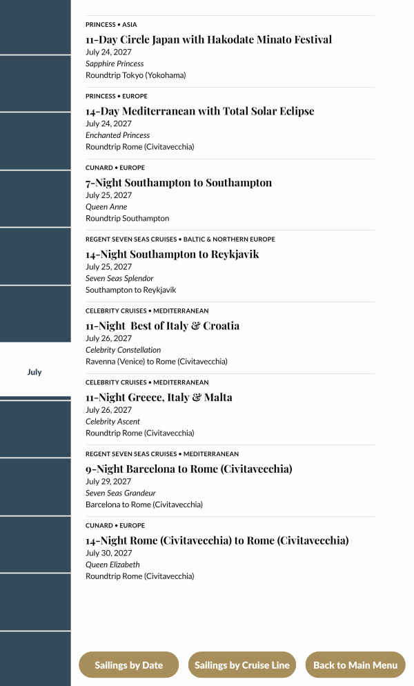 July 25, 2027 Queen Anne Roundtrip Southampton