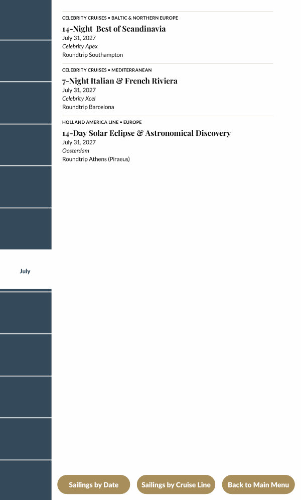 Sailings by Cruise Line