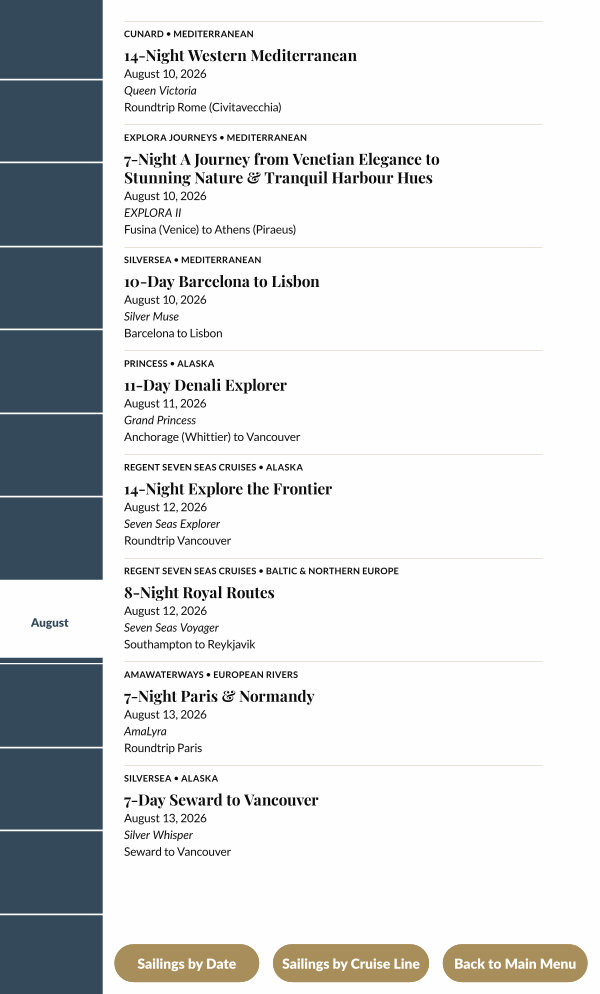 August 12, 2026 Seven Seas Explorer Roundtrip Vancouver