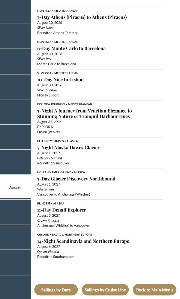 Sailings by Cruise Line