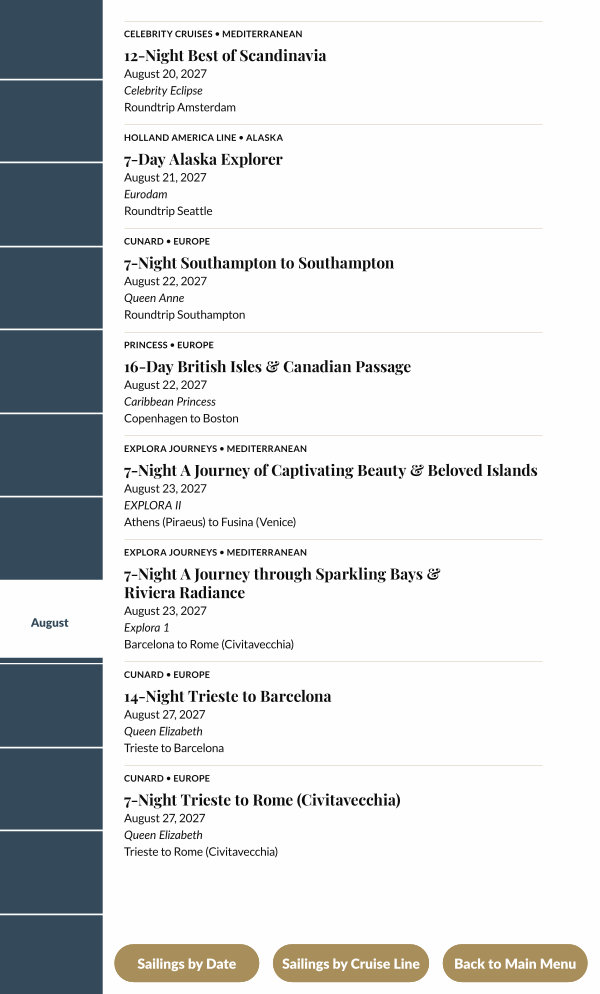 Sailings by Cruise Line