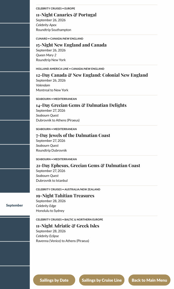 September 27, 2026 Seabourn Quest Dubrovnik to Athens( Piraeus)