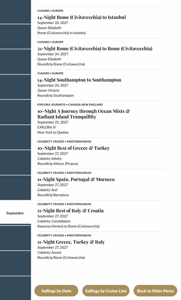 September 24, 2027 Queen Elizabeth Rome( Civitavecchia) to Istanbul