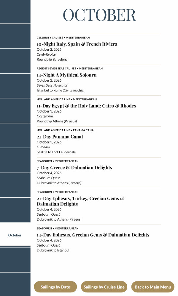 Sailings by Cruise Line