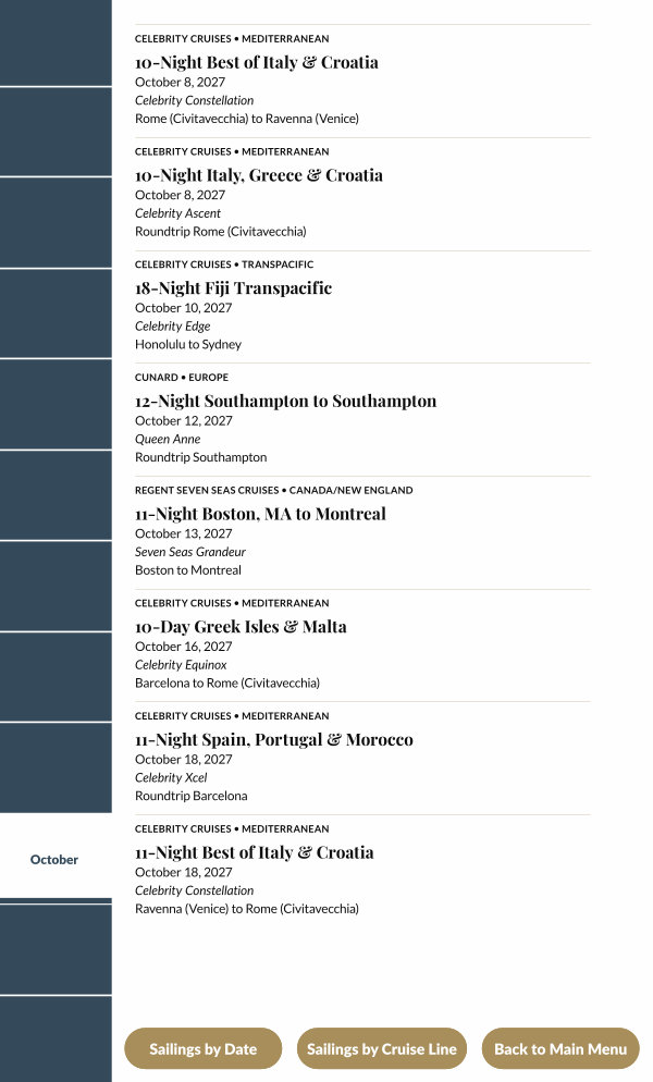 October 18, 2027 Celebrity Constellation Ravenna( Venice) to Rome( Civitavecchia)
