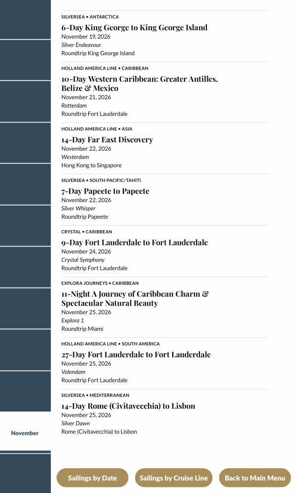 November 25, 2026 Volendam Roundtrip Fort Lauderdale