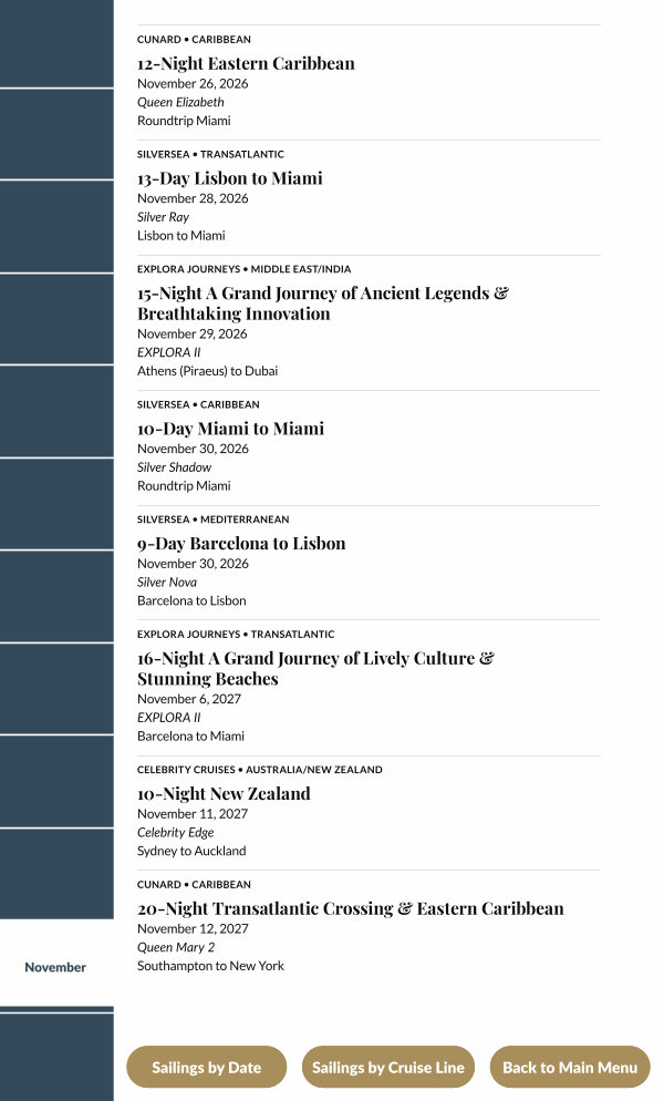 Sailings by Cruise Line