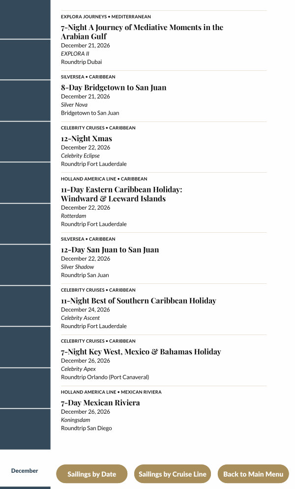 Sailings by Cruise Line