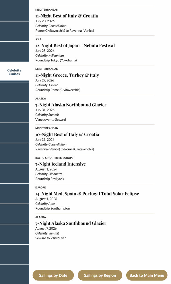July 31, 2026 Celebrity Constellation Ravenna( Venice) to Rome( Civitavecchia)