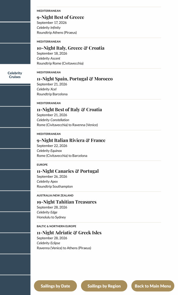 September 17, 2026 Celebrity Infinity Roundtrip Athens( Piraeus)
