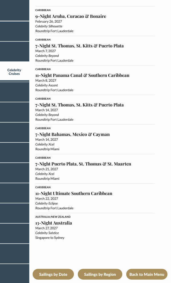 March 14, 2027 Celebrity Xcel Roundtrip Miami