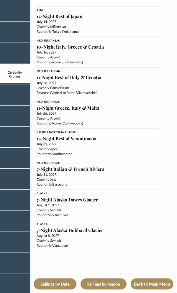 July 26, 2027 Celebrity Constellation Ravenna( Venice) to Rome( Civitavecchia)