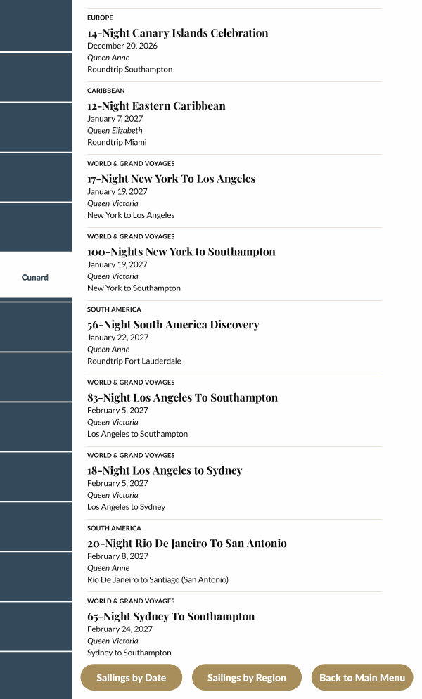 January 19, 2027 Queen Victoria New York to Southampton