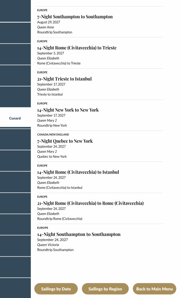 September 17, 2027 Queen Elizabeth Trieste to Istanbul