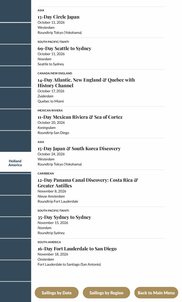 October 20, 2026 Koningsdam Roundtrip San Diego
