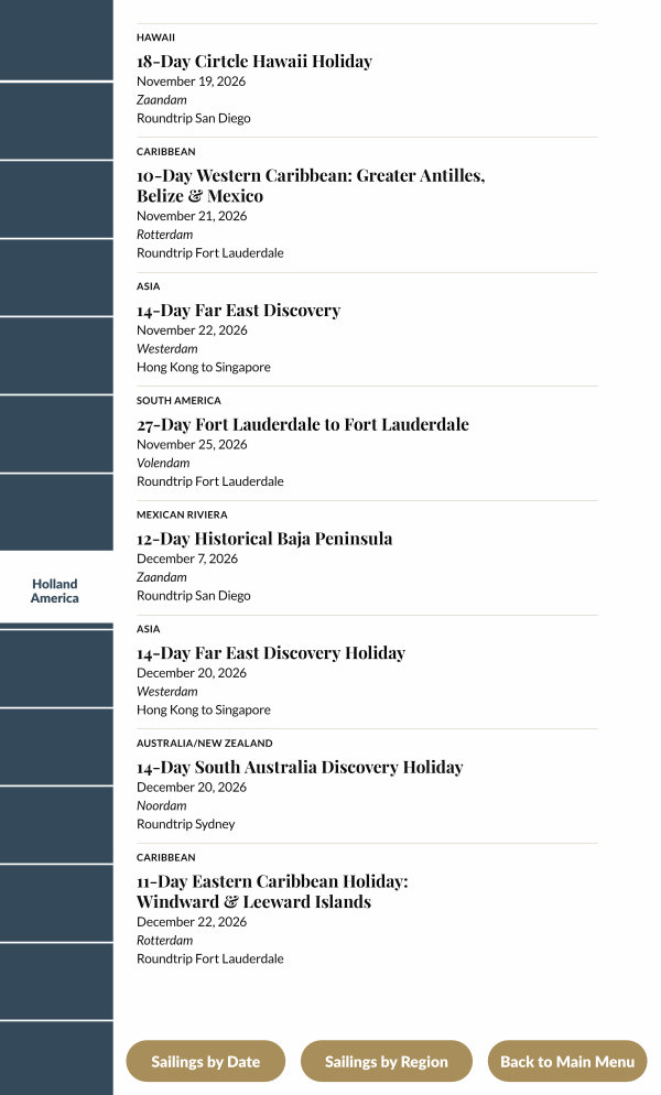 December 22, 2026 Rotterdam Roundtrip Fort Lauderdale