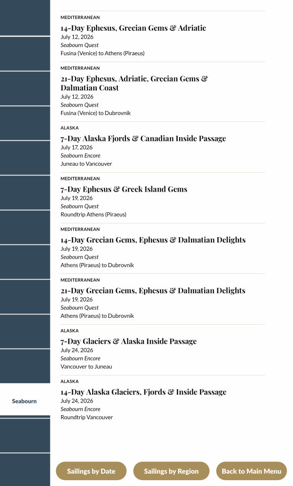 July 19, 2026 Seabourn Quest Athens( Piraeus) to Dubrovnik