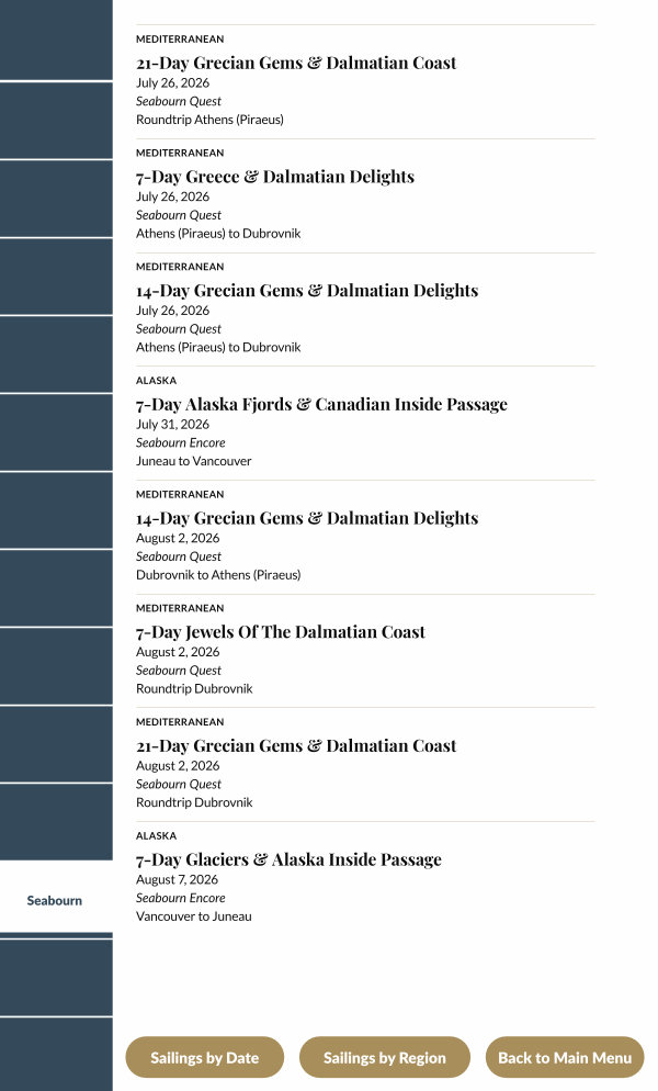 July 26, 2026 Seabourn Quest Athens( Piraeus) to Dubrovnik