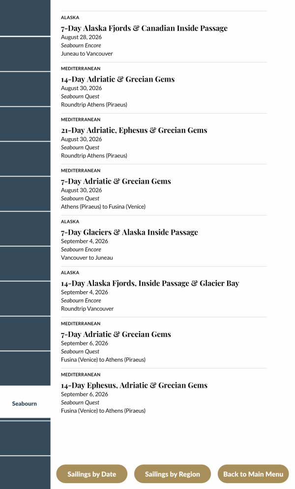 September 6, 2026 Seabourn Quest Fusina( Venice) to Athens( Piraeus)